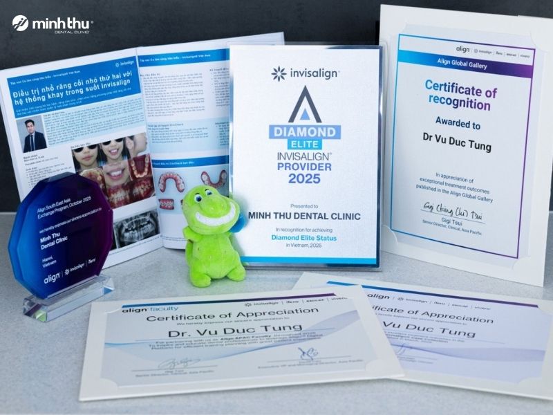 Thời gian đạt mốc 10 năm vào năm 2024 là cột mốc ghi dấu mối quan hệ hợp tác bền chặt giữa hai bên. Qua đó, Bác sĩ Vũ Đức Tùng của Minh Thu đã đạt được nhiều thành tích, giải thưởng, là báo cáo viên nhiều năm của hãng và thường xuyên được Invisalign mời tham dự, chia sẻ tại các hội nghị, hội thảo lớn trên toàn thế giới.