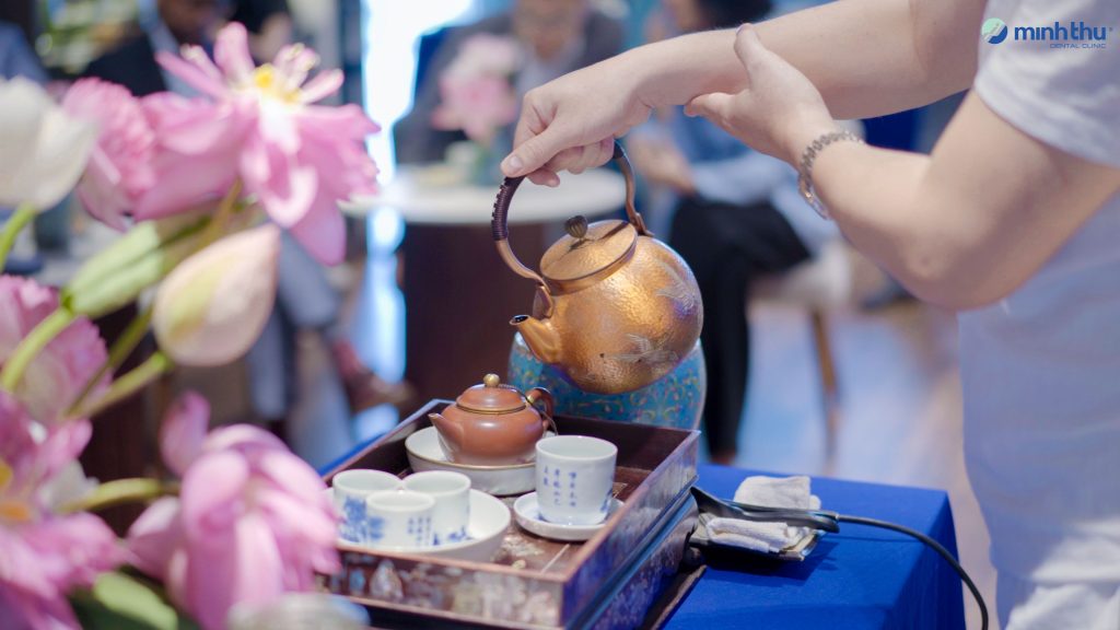 Buổi tiếp đón đặc biệt hơn nhờ có sự góp mặt của Nghệ nhân Trà Hoàng Anh Sướng – Người đã từng dâng trà cho nhiều nguyên thủ quốc gia như Tổng Bí thư Nguyễn Phú Trọng, Chủ tịch TQ Tập Cận Bình, Vua và Hoàng Hậu Nhật Bản, tỷ phú Bill Gates…