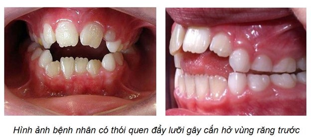 Đây là hoạt động bất thường của lưỡi, lưỡi đẩy ra trước và nằm giữa răng của trên và dưới trong quá trình ăn nhai, nuốt, phát âm hay ngay ở trạng thái nghỉ.